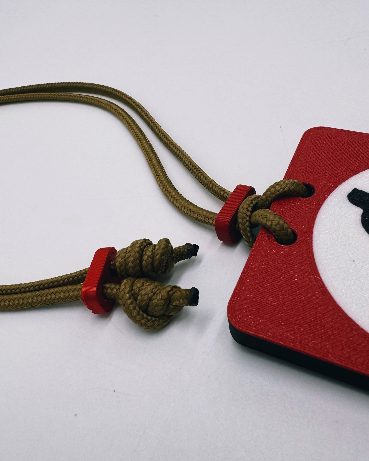 - 1 m paracord + 2 red sliders for fit adjustment (reusable beyond race day).